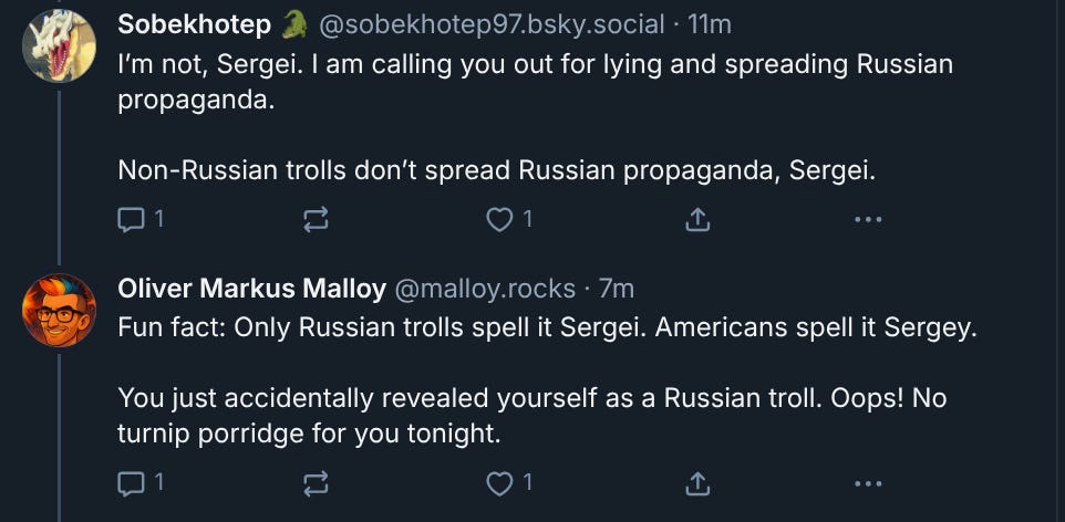 Russian trolls also love to falsely accuse people of being “russophobic” if you talk about Russian trolls.