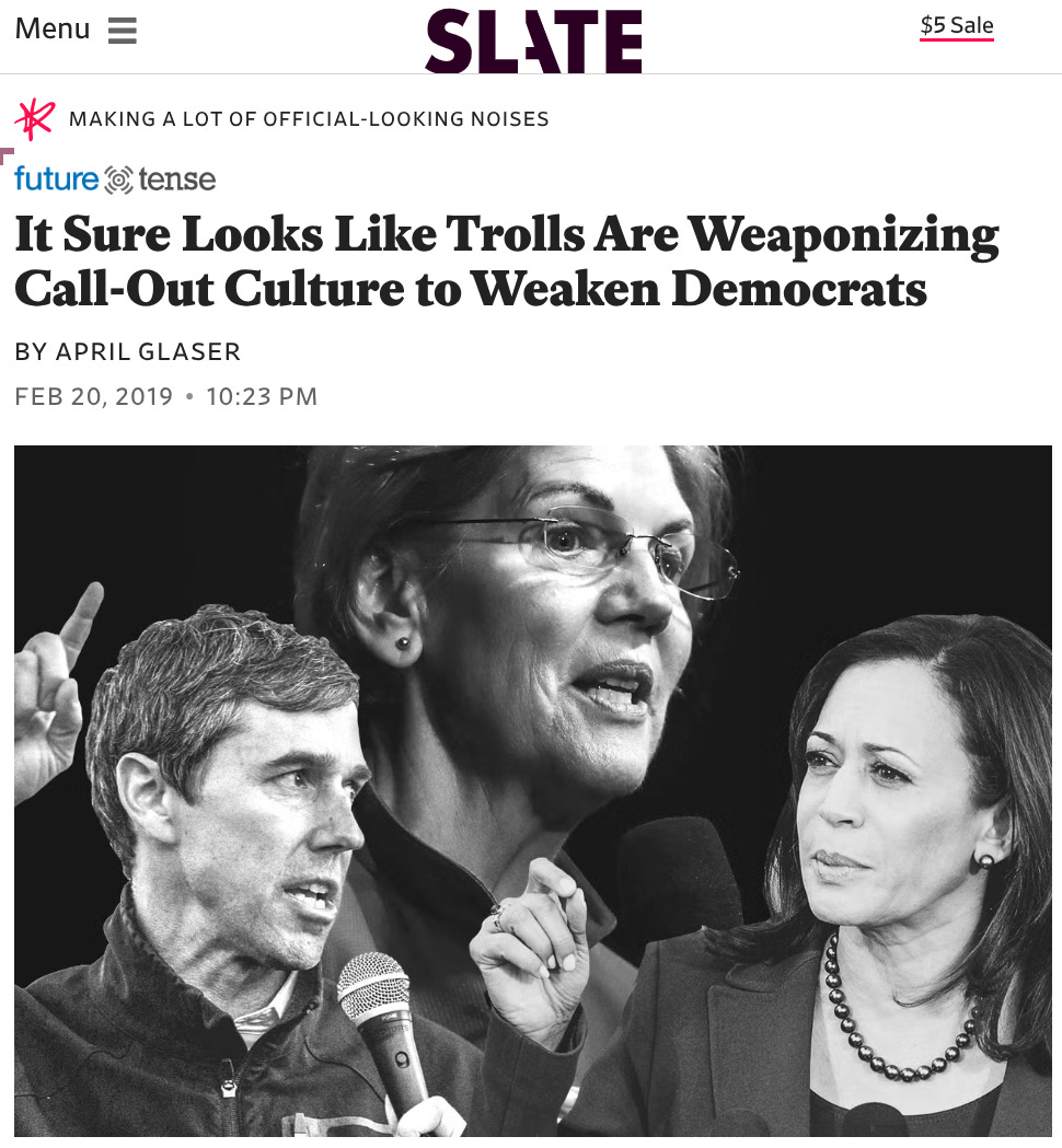 Weaponizing false accusations is a propaganda tactic Russian trolls use against all outspoken Democrats and Trump critics. You don’t have to be a politician or a celebrity.