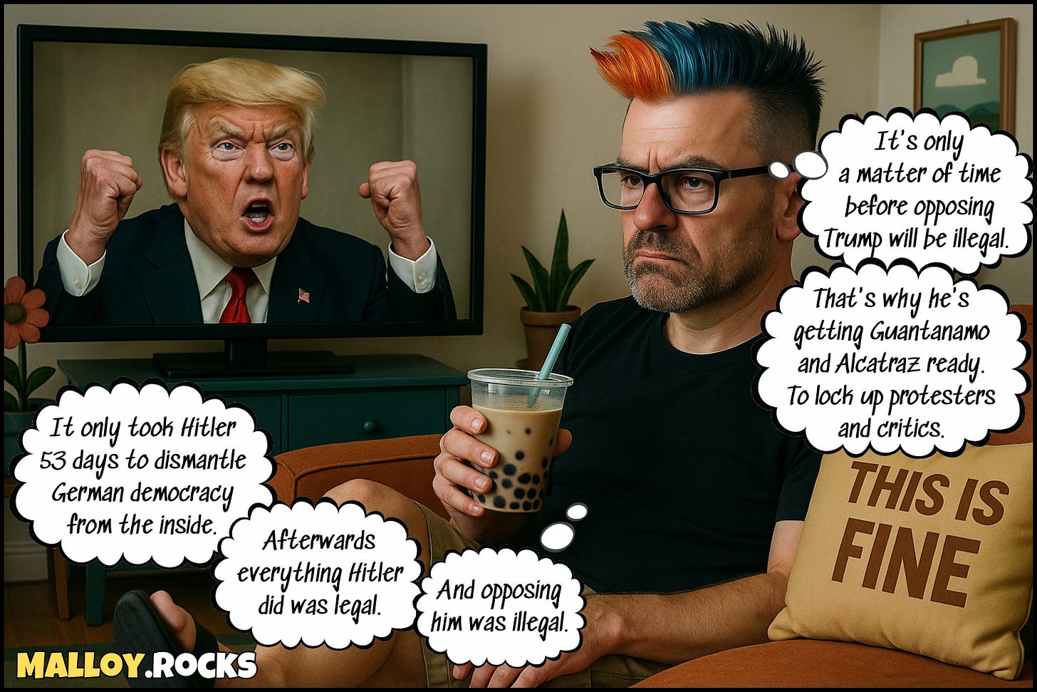 Playback speed×Share postShare post at current timeShare from 0:000:00/0:00Transcript166783General Milley agrees with the Democrats that the military does not swear allegiance to a dictator and must not follow illegal orders.This is why Orange Hitler threatened to execute General Milley.Oliver Markus MalloyNov 21, 2025166783ShareTranscriptDemocrats urge military not to follow illegal orders. Trump accuses them of sedition.Trump is imitating Hitler in broad daylight. This is not normal.We are the resistance. To receive new posts and support my work, consider becoming a free or paid subscriber.SubscribeDiscussion about this videoCommentsRestacksMalloy.rocksSubscribeAuthorsOliver Markus MalloyRecent PostsYesss! Congress just voted to release the Epstein files!Nov 18 • Oliver Markus Malloy"Normalcy bias" blinds Americans to the catastrophic dangers ahead.Nov 16 • Oliver Markus MalloyIf Trump doesn't want to be compared to Hitler, he should stop imitating Hitler.Nov 8 • Oliver Markus MalloyTrump convinced MAGA dumbfucks that liberals want to exterminate them. Hitler said it first.Nov 5 • Oliver Markus MalloyIf Hitler were alive today, he'd sound exactly like Trump.Nov 2 • Oliver Markus MalloyICE stormtroopers deliberately shoot priest in the head during peaceful protest.Oct 10 • Oliver Markus MalloyJimmy Kimmel is more popular than ever thanks to Orange Hitler's failed attempt to silence him.Sep 30 • Oliver Markus Malloy