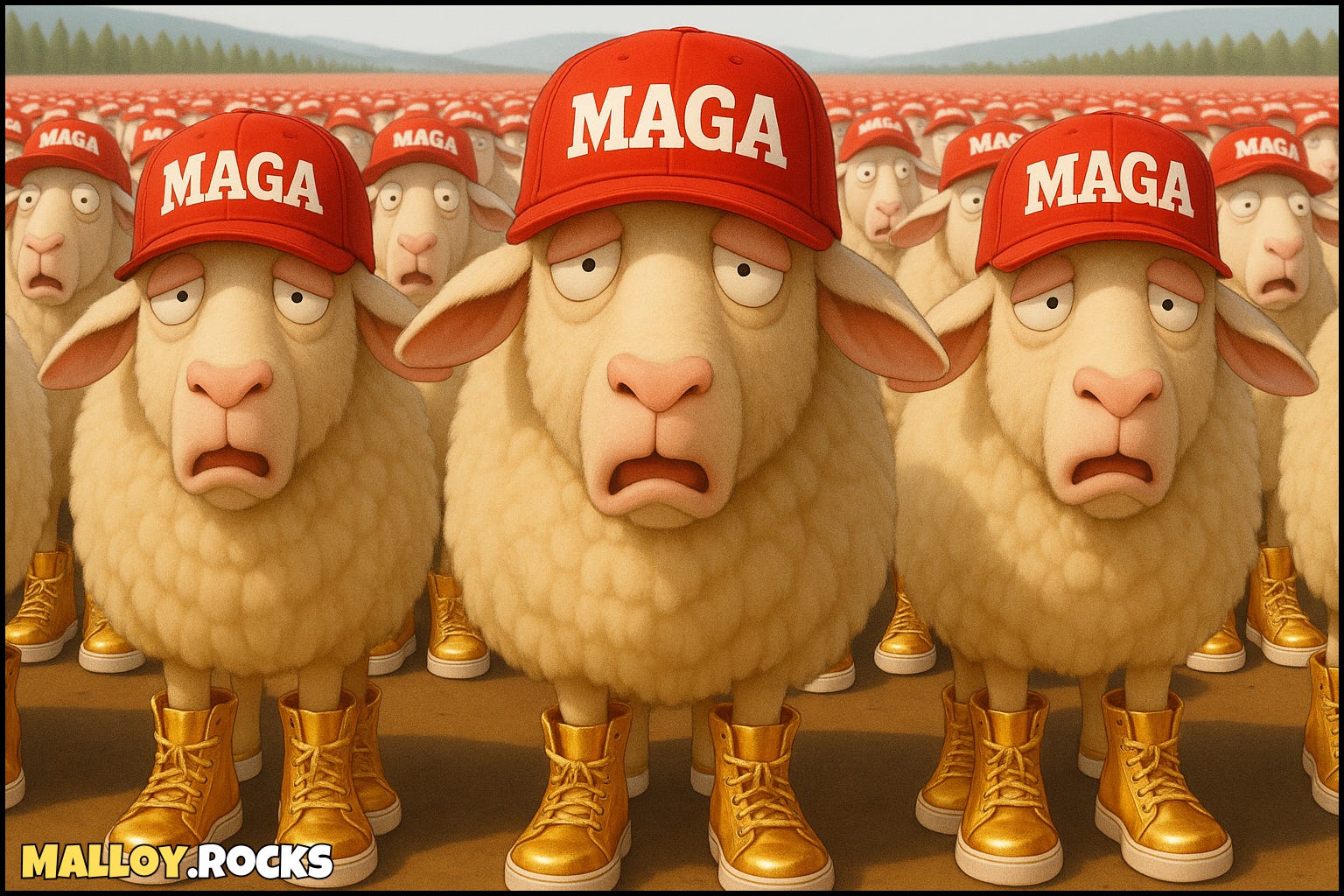 Love them all! I'm fond of sheep, so sorry to see them in red hats but it's an apt message. Keep up the good work! And I'll say it again, love the hair!