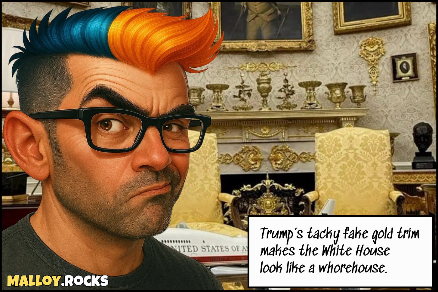 I couldn't believe it when saw one about his gold leafing and comment. Been saying along Oval Office now looks like everyone's there visiting a boredello!!!!