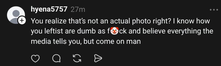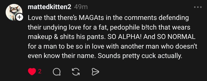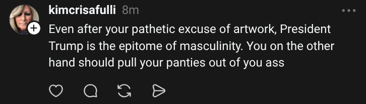 I posted this image on Threads, and a bunch of MAGA losers rushed to Dementia Donnie’s defense: