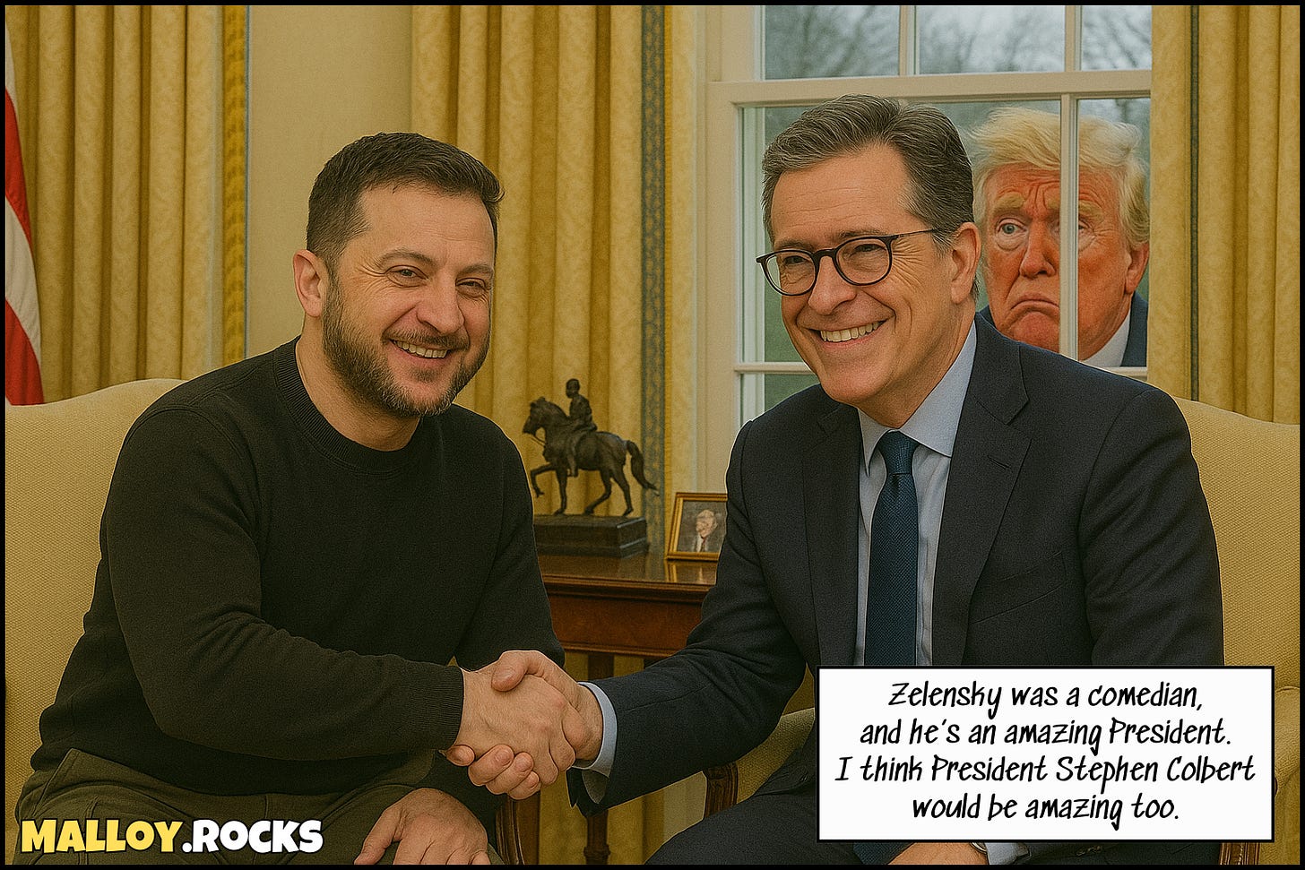 ❤ Stephen Colbert for President 2028Stephen would definitely, without a doubt, be a better President than the Orange Pedo. Oliver Markus MalloyJul 20, 20251731838ShareMalloy.rocks is a reader-supported publication. To receive new posts and support my work, consider becoming a free or paid subscriber.SubscribePreviousNext