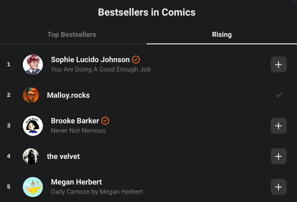 #2 rising in Comic Bestsellers! Yay! I feel seen! 👀 I feel loved! 🥰