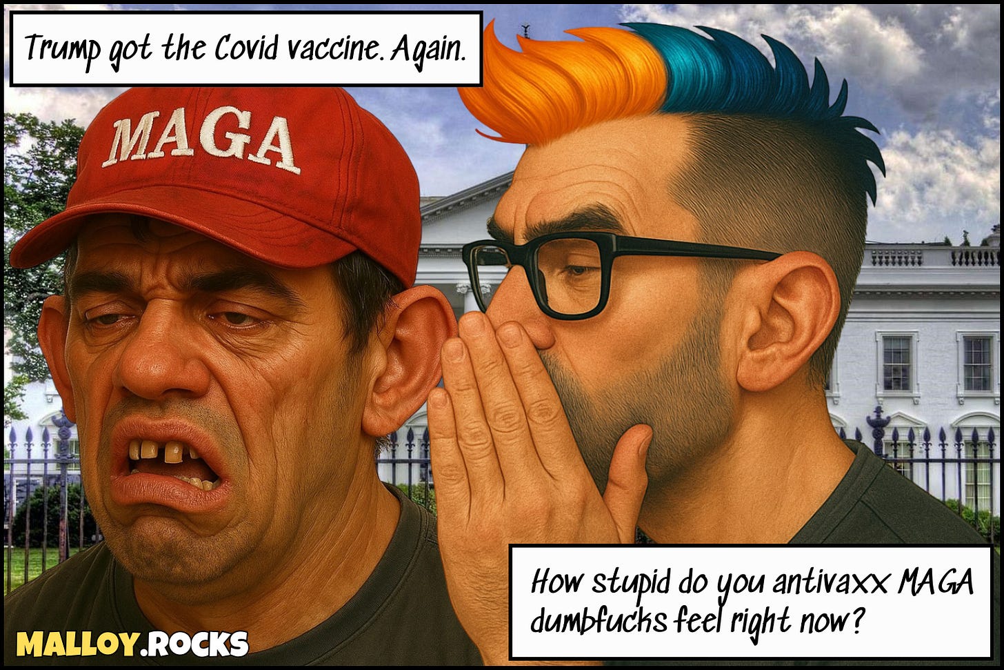 Trump got the Covid vaccine. Again.How stupid do you antivaxx MAGA dumbfucks feel right now?Oliver Markus MalloyOct 15, 2025811726ShareMAGA dumbfucks are the dumbest fucking people on the planet.If you like my comics, feel free to “steal” them. To receive new posts and support my work, consider becoming a free or paid subscriber.SubscribePrevious