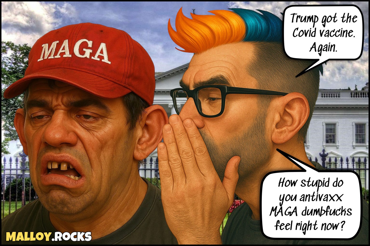 Trump got the Covid vaccine. Again.How stupid do you antivaxx MAGA dumbfucks feel right now?Oliver Markus MalloyOct 15, 20251602247ShareMAGA dumbfucks are the dumbest fucking people on the planet.If you like my comics, feel free to “steal” them. To receive new posts and support my work, consider becoming a free or paid subscriber.SubscribePreviousNext